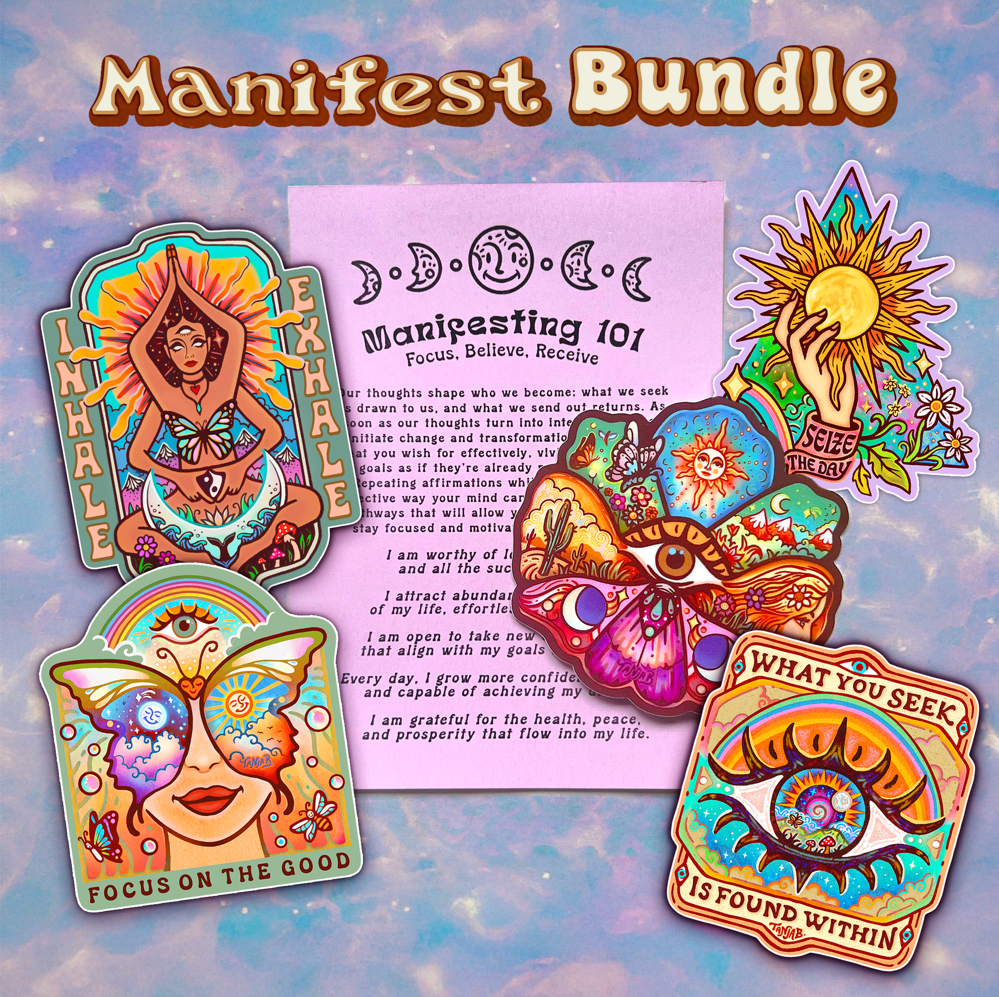 5 High Quality Vinyl Stickers + Manifest Guide